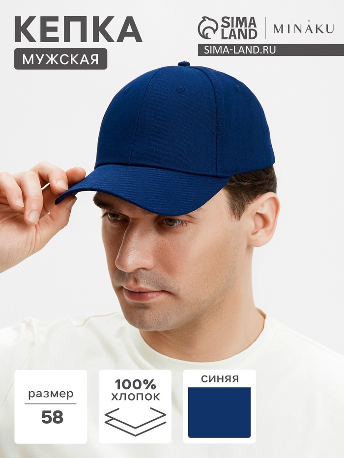 Кепка мужская однотонная MINAKU, размер 58, 100% хлопок, тёмно-синяя
