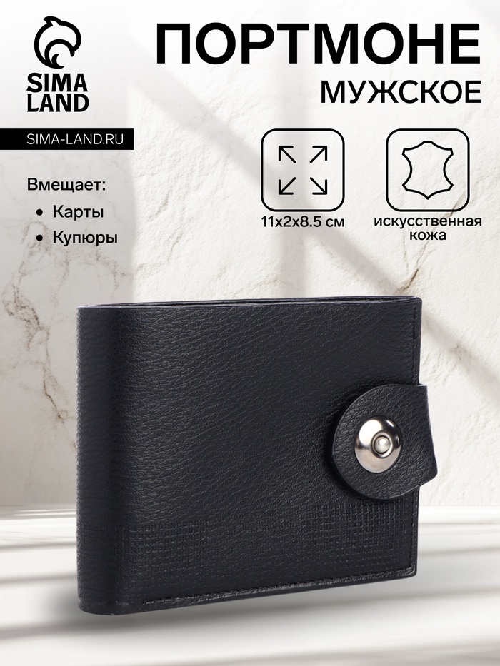 Портмоне мужское «Бадр», на магните, отдел для карт, монет, чёрное