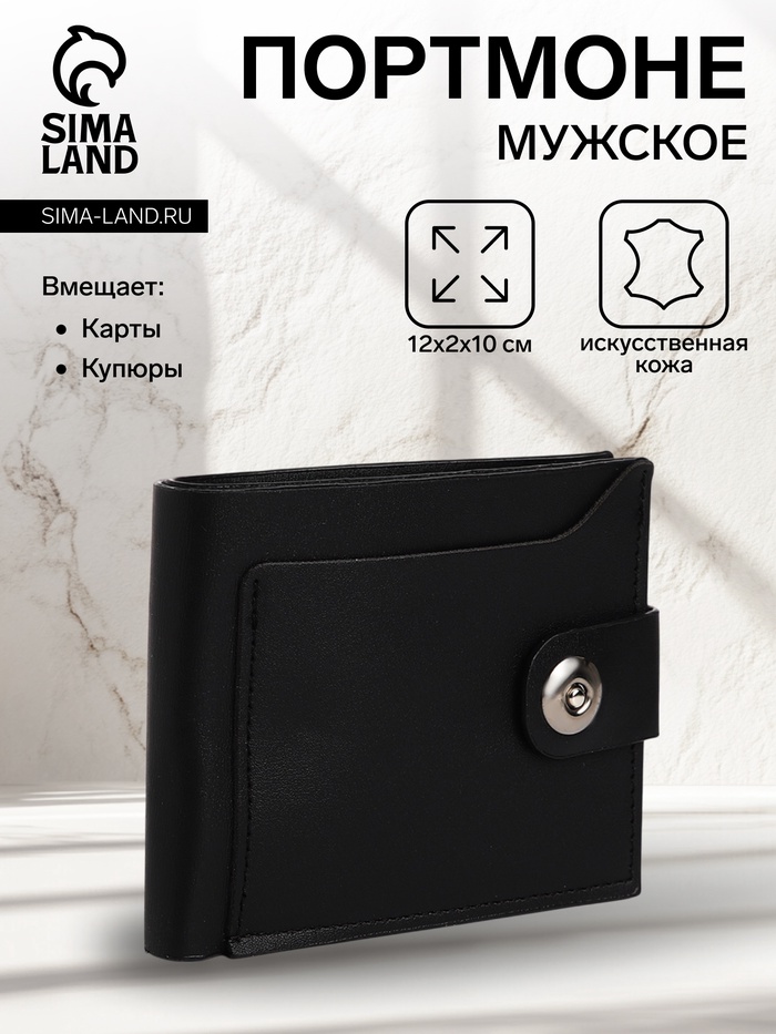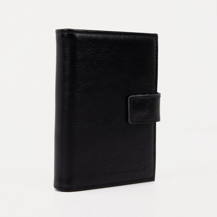 Портмоне мужское на кнопке, отдел для автодокументов и паспорта, чёрное