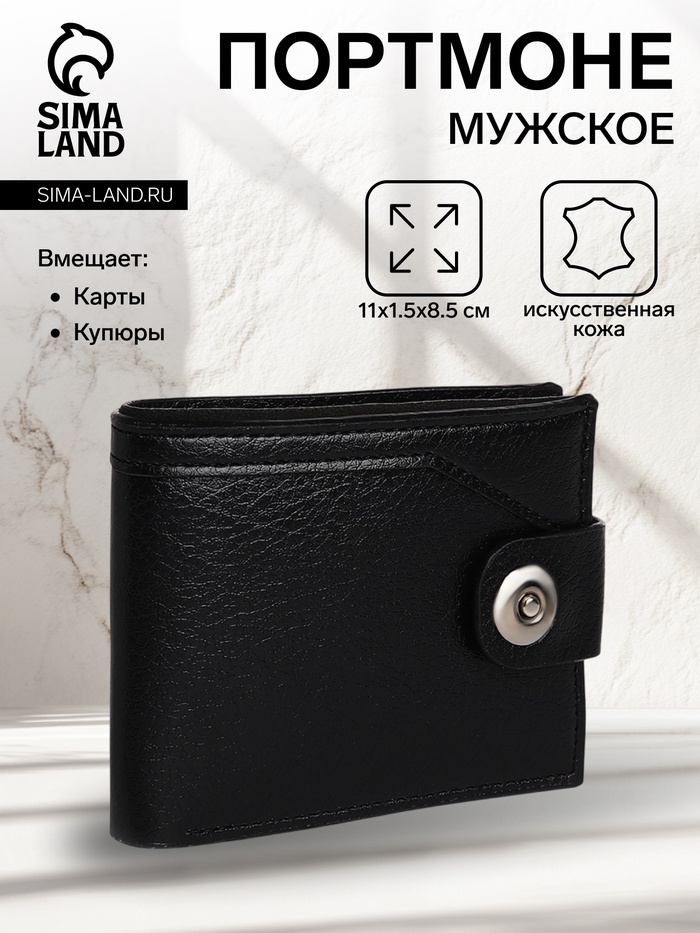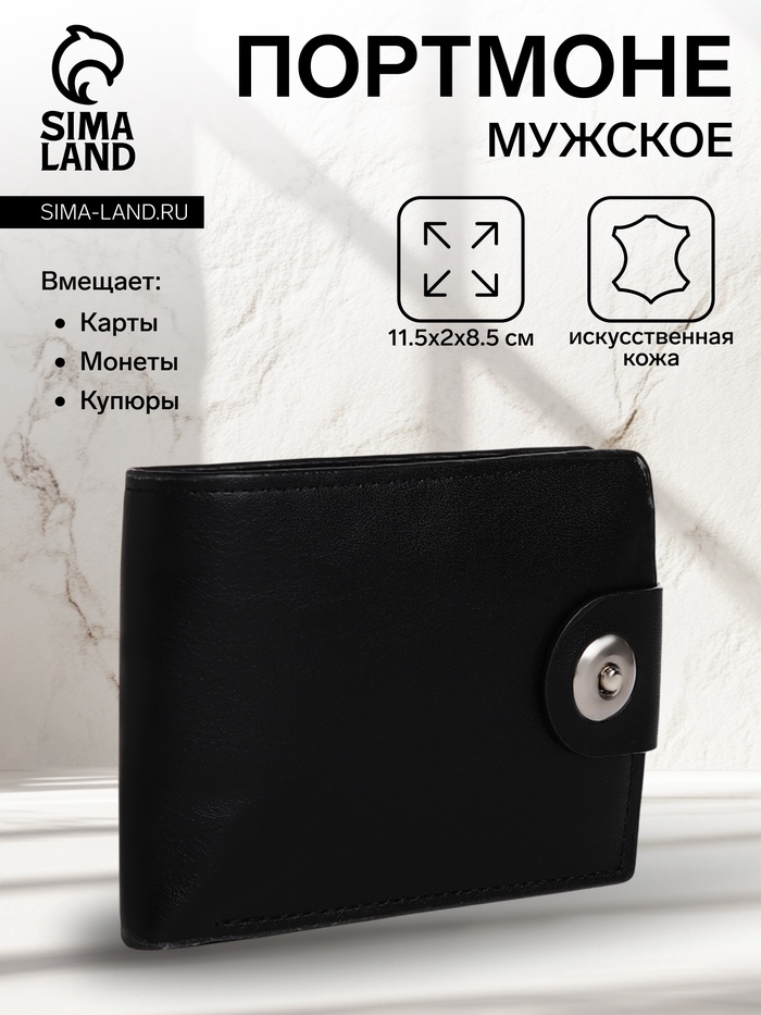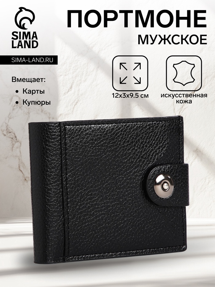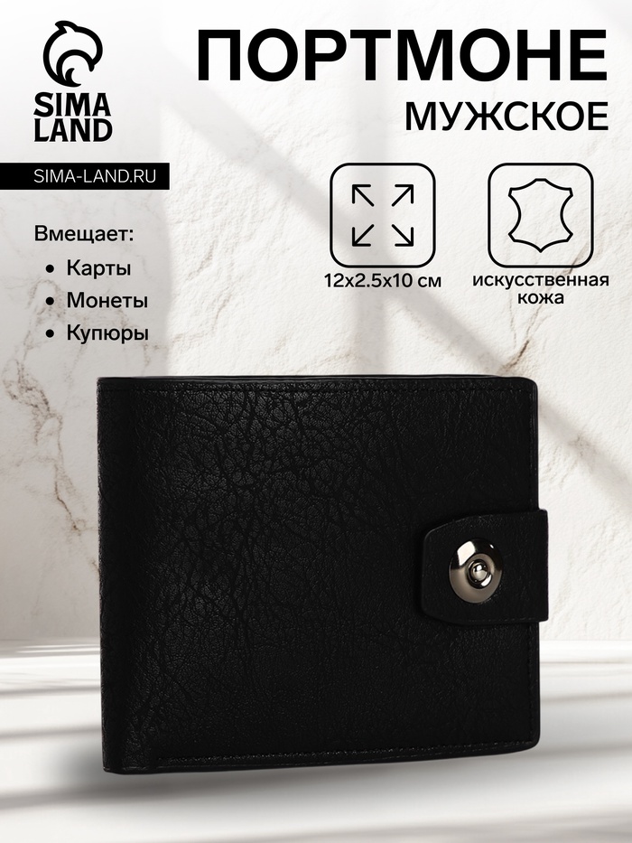 Портмоне мужское «Сахир», на магните, отдел для купюр, для карт, для монет, чёрное