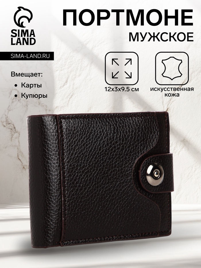 Портмоне мужское на магните, отдел для купюр, для карт, для монет, тёмно-коричневое