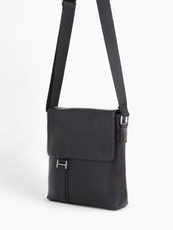 Сумка мужская, натуральная кожа, на длинном ремне, Fidelio Largo, чёрная