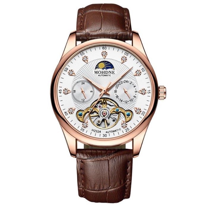 Часы наручные мужские, механические, d=4.5 см, ремешок экокожа, l-26 см, 3 ATM