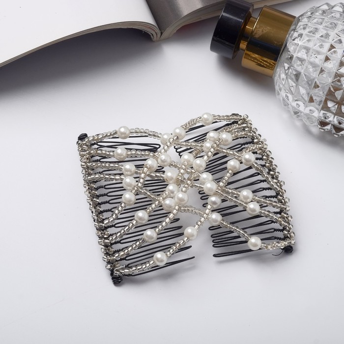 Зажим для волос «Сетка», бусины, 8×7 см, белый