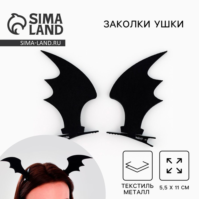 Заколки для волос ушки «Крылья», черные, 2 шт, 11 х 12 см