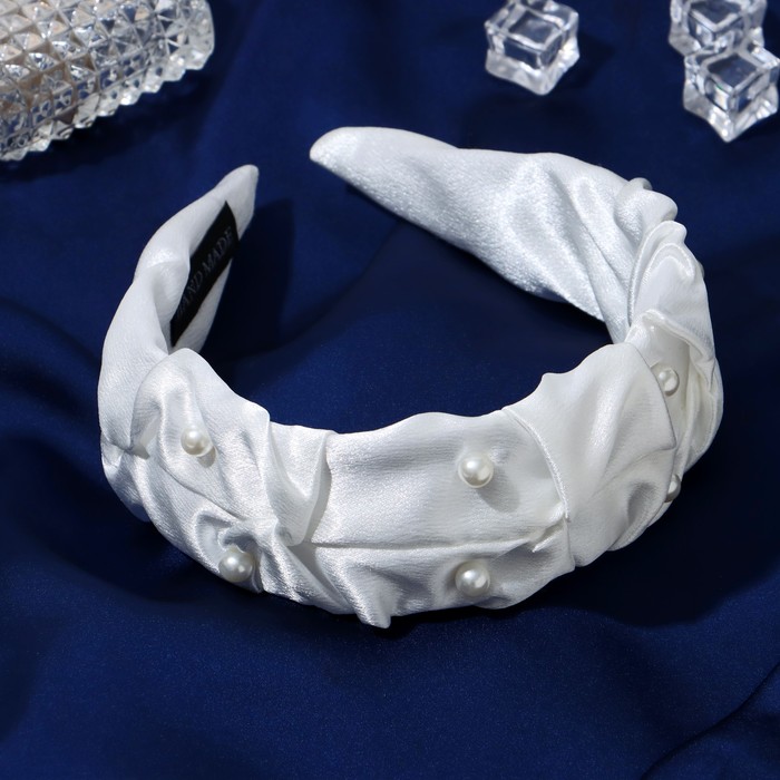 Ободок для волос «Юнона», бусинки, 5 см, белый