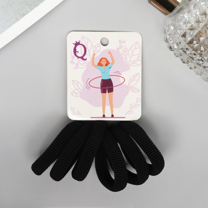 Резинки для волос «Вивьен», набор 6 шт., шик, 4 см, чёрные