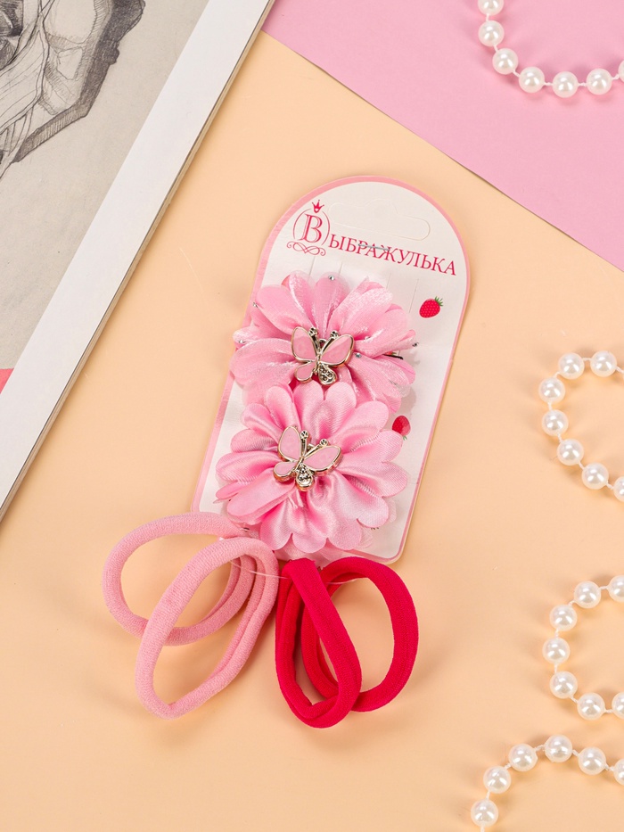 Набор для волос «Кокетка», 4 резинки 4 см, 2 зажима 6 см, нежность бабочка, розовый