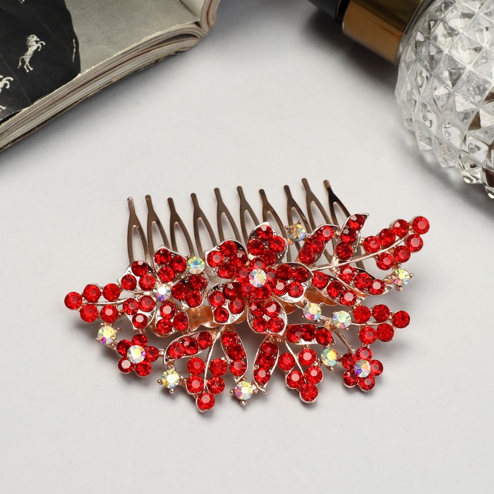 Гребень для волос QF «Прелеста», цветок, 6×8 см, красный