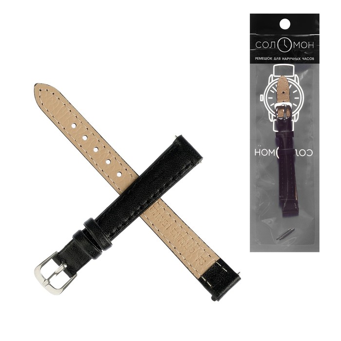 Ремешок для часов "Соломон", 12 мм, натуральная кожа, l-18 см, черный