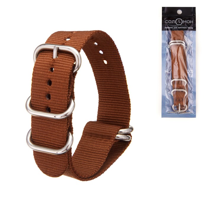 Ремешок для часов "Соломон", 22 мм, l-27 см, коричневый