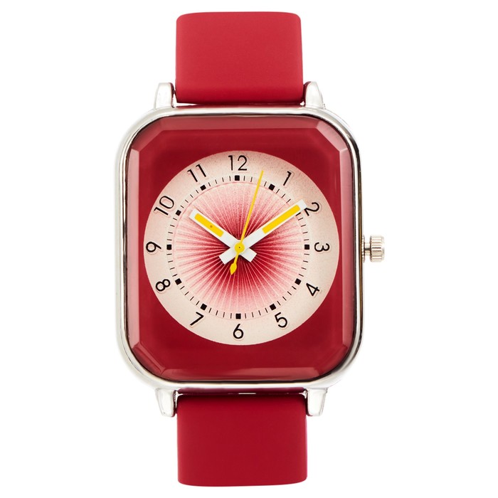 Часы наручные кварцевые женские, d-2 см, ремешок силикон l-25 см, красные