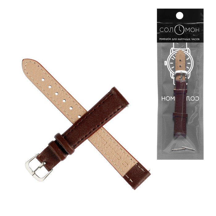 Ремешок для часов "Соломон", 14 мм, натуральная кожа, l-18 см, коричневый