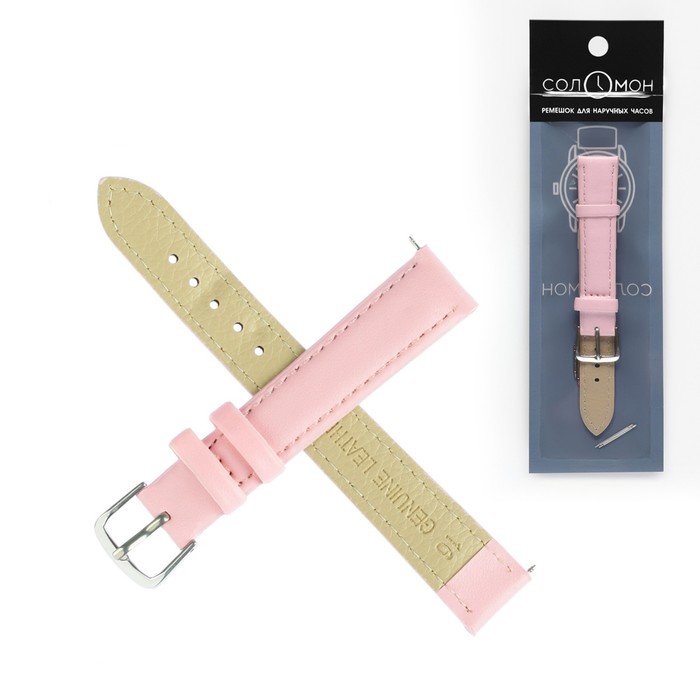 Ремешок для часов "Соломон", 16 мм, натуральная кожа, l-20 см, светло-розовый