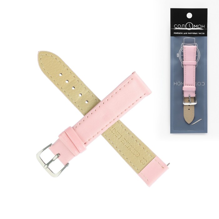 Ремешок для часов,"Соломон", 18 мм, натуральная кожа, l-20 см, светло-розовый
