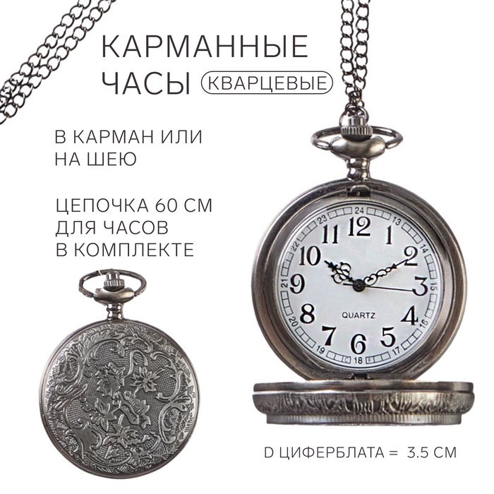 Часы карманные «Классика», кварцевые, длина цепочки 40 см, циферблат d=4.5 см, под гравировку