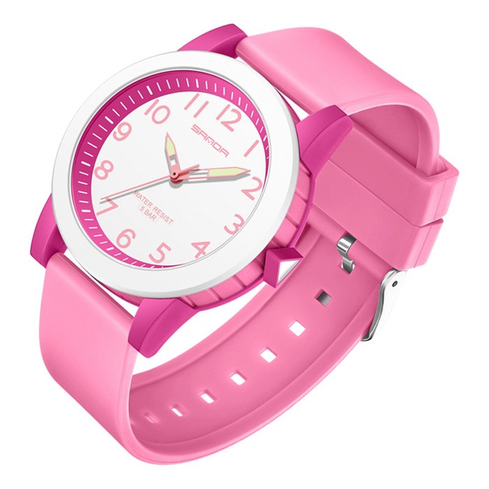 Часы наручные детские, d-3.4 см, водонепроницаемые, светящиеся, ремешок силикон, розовые