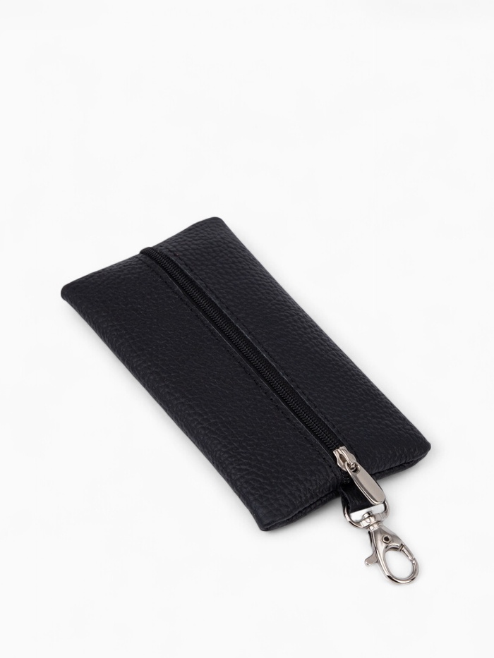 Ключница карманная на молнии, длина 15 см, кольцо, карабин, цвет чёрный