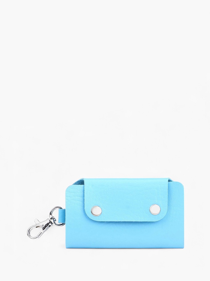 Ключница карманная на кнопках, 7 карабинов, размер 11×2×6.5 см, голубая