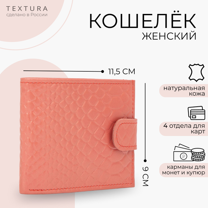 Кошелёк женский на кнопке TEXTURA, цвет чайной розы