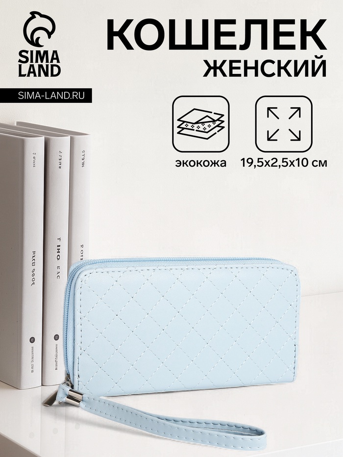 Кошелёк женский на молнии с ремешком, цвет голубой