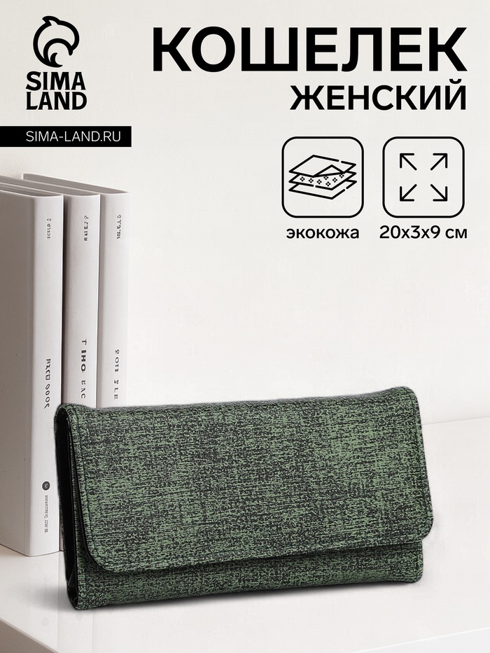 Кошелёк женский на магните, 20×3×9 см, зелёный