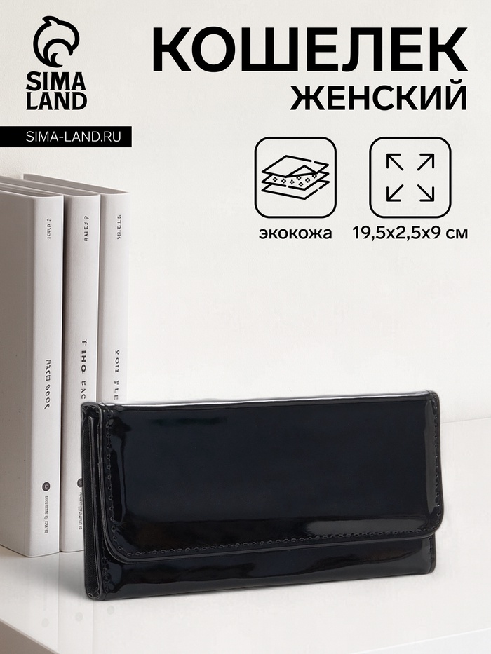 Кошелёк женский на магните, 19.5×2.5×9 см, лаковый, чёрный