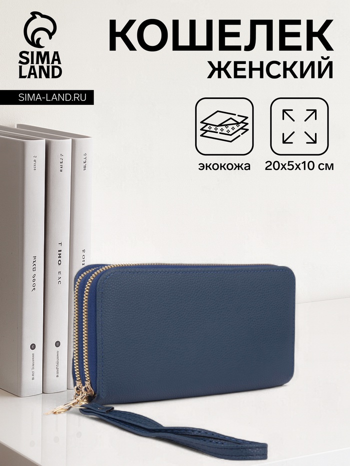 Кошелёк женский на молниях с ремешком, цвет чёрный