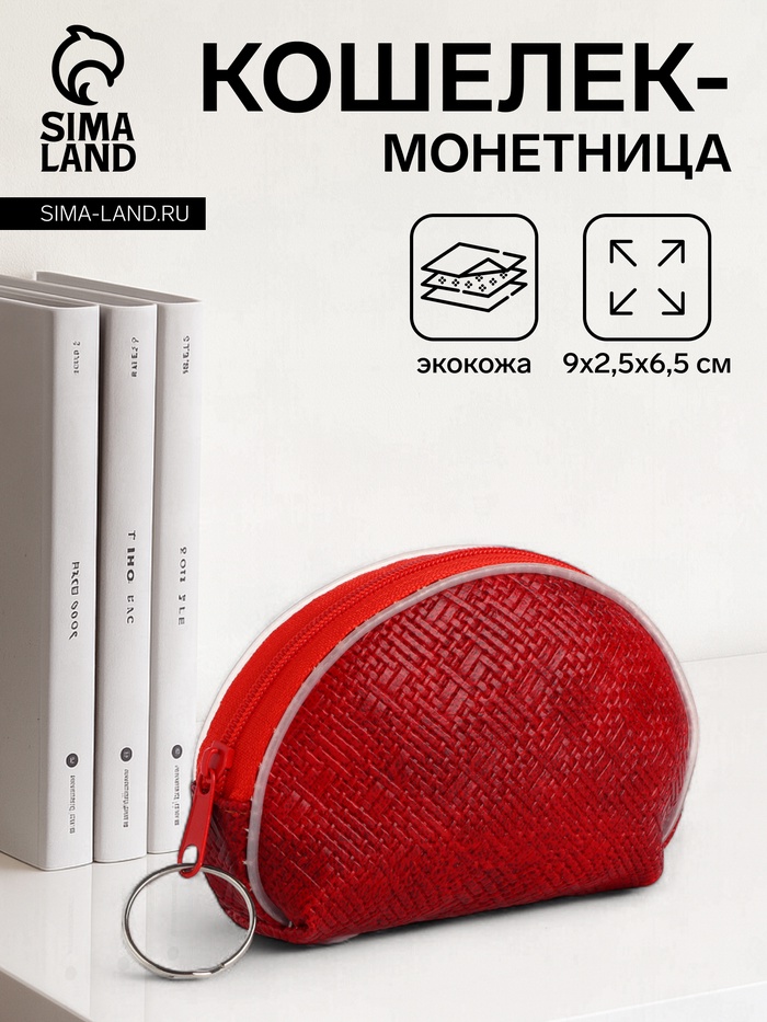 Кошелёк-монетница на молнии, 9×2.5×6.5 см, красный