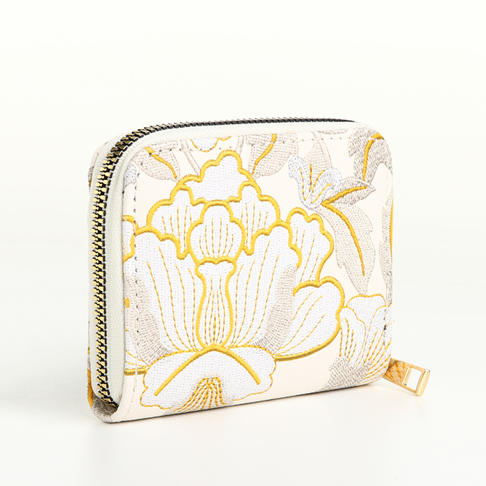 Кошелёк на молнии, три отделения, маленький, с вышивкой, белый