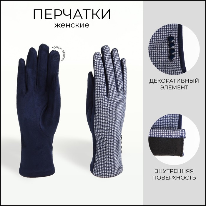 Перчатки женские двойные, безразмерные, сенсорные, без утеплителя, синие