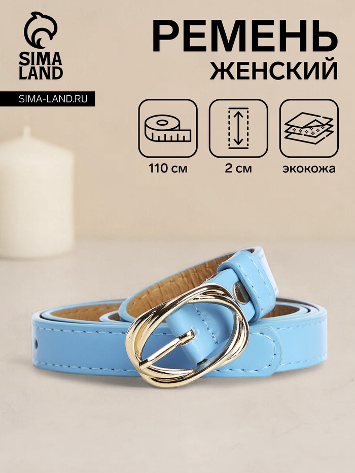 Ремень женский, ширина 2 см, винт, цвет голубой