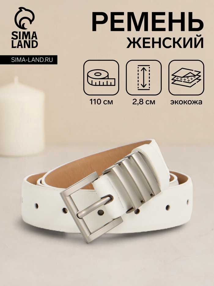 Ремень женский, 110×2.8 см, прямоугольная пряжка металл, серебристая, белый