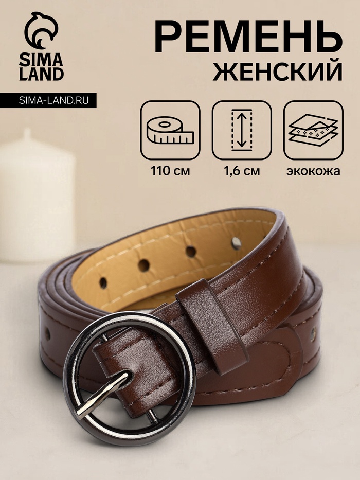 Ремень женский тонкий, 110×1.6 см, пряжка тёмный металл, круглая, коричневый
