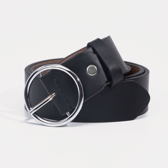 Ремень женский с винтом, 105×3.2 см, круглая пряжка металл, серебристая, чёрный