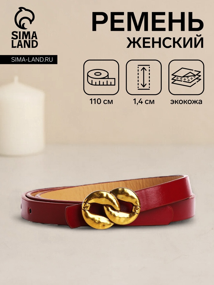 Ремень женский тонкий, 110×1.4 см, пряжка-гвоздик металл, золотистая, бордовый