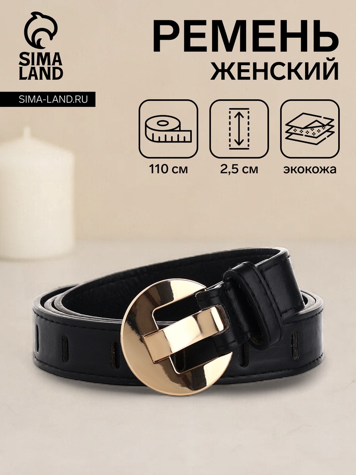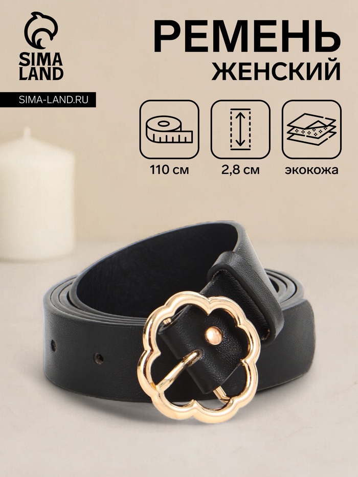 Ремень женский, 110×2.8 см, с пряжкой металл, чёрный
