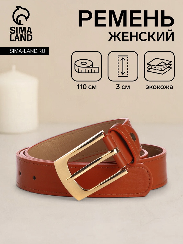 Ремень женский, 110×3 см, классическая пряжка металл, золотистая, рыжий