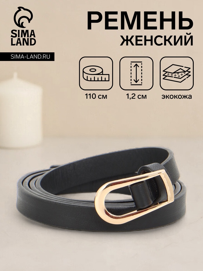 Ремень женский, ширина 1.2 см, пряжка металл, чёрный
