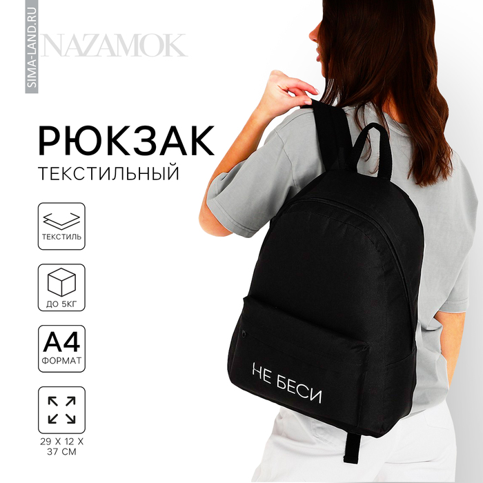 Рюкзак школьный молодёжный «Не беси», 29×12×37 см, отдел на молнии, наружный карман, чёрный