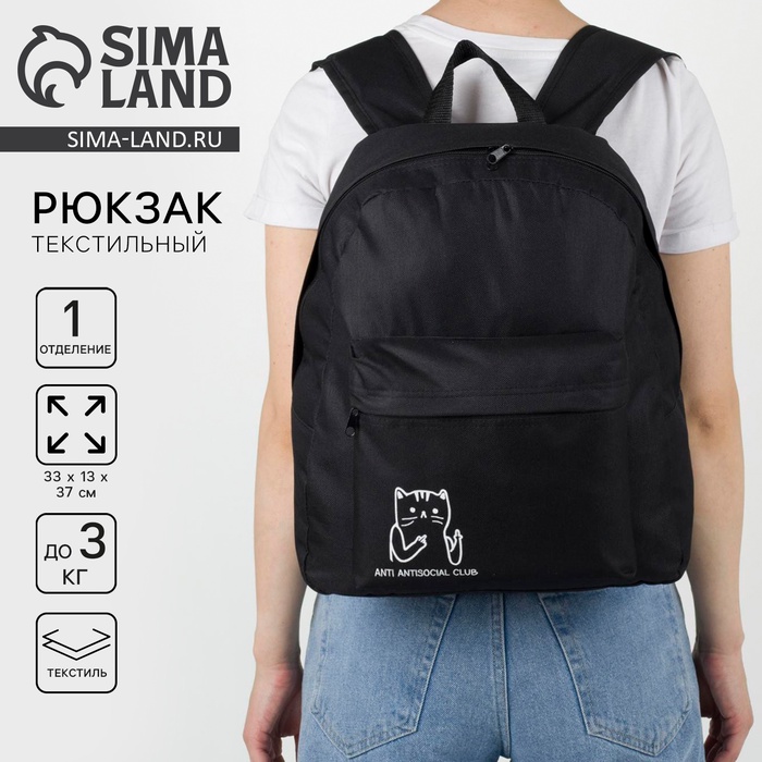 Рюкзак школьный молодёжный Anti antisocial club, 33×13×37 см, отдел на молнии, наружный карман, чёрный