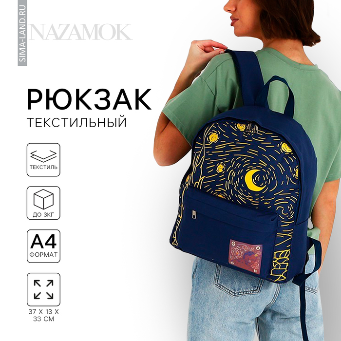 Рюкзак школьный текстильный ART, с переливающейся нашивкой, темно-синий