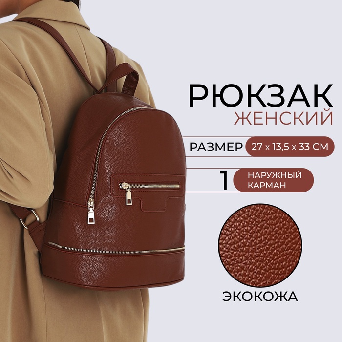 Рюкзак женский Arctoris на молнии, с карманом, коричневый