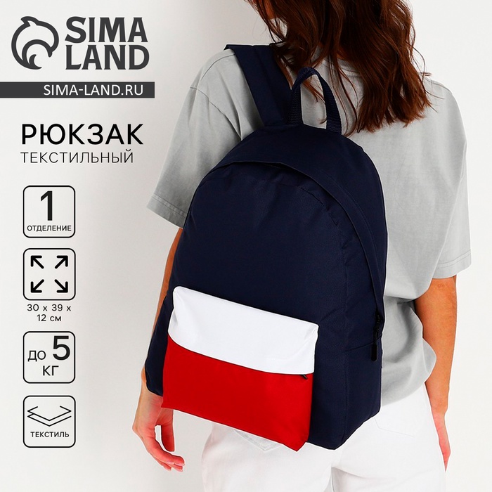 Рюкзак школьный текстильный с цветным карманом, 30х39х12 см, синий, бордовый, белый