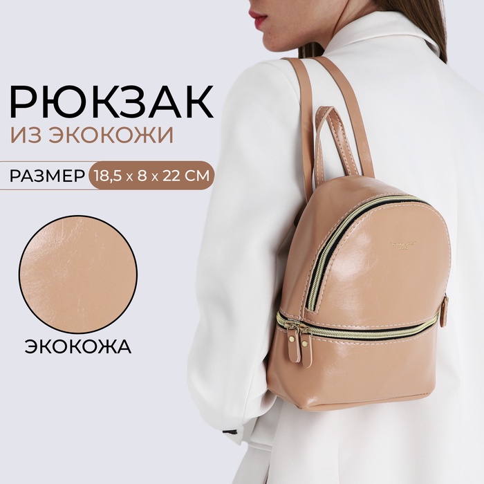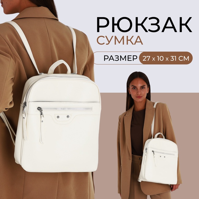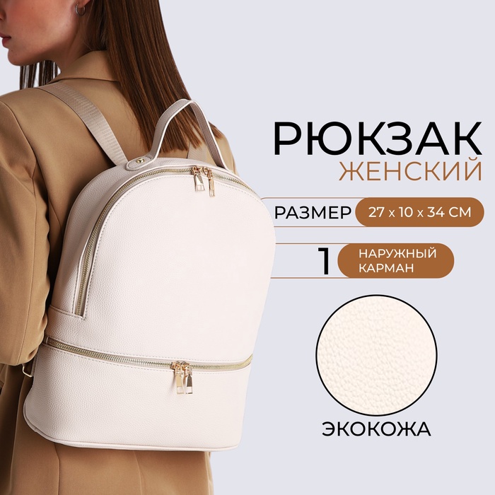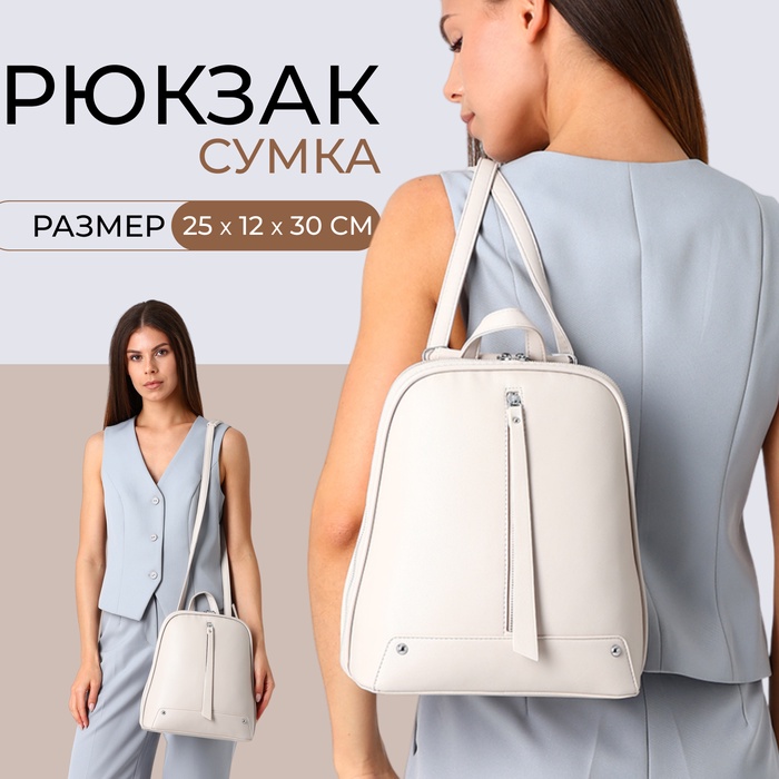 Рюкзак-сумка из искусственной кожи на молнии, цвет бежевый