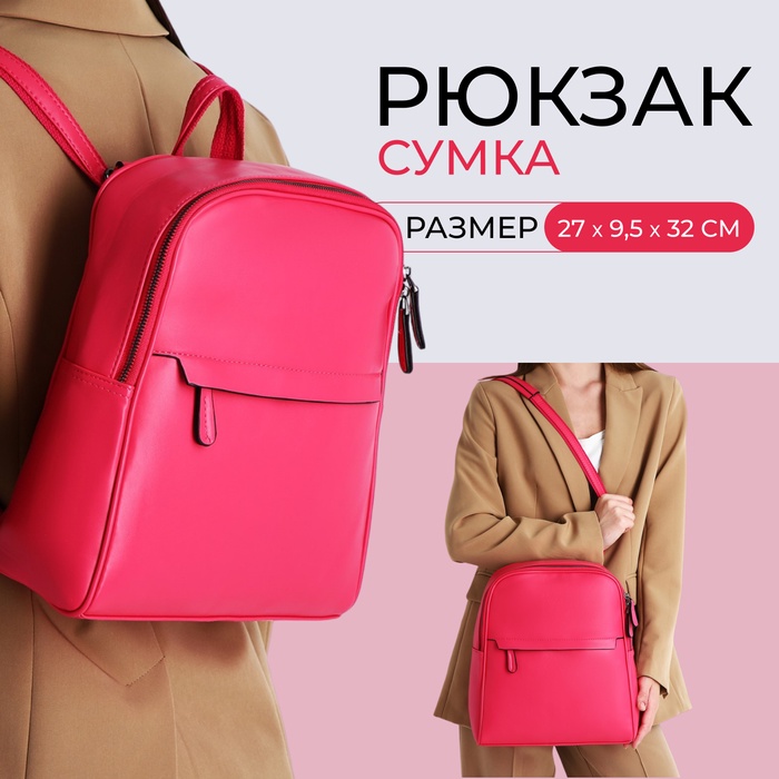 Рюкзак-сумка из искусственной кожи на молнии, цвет розовый