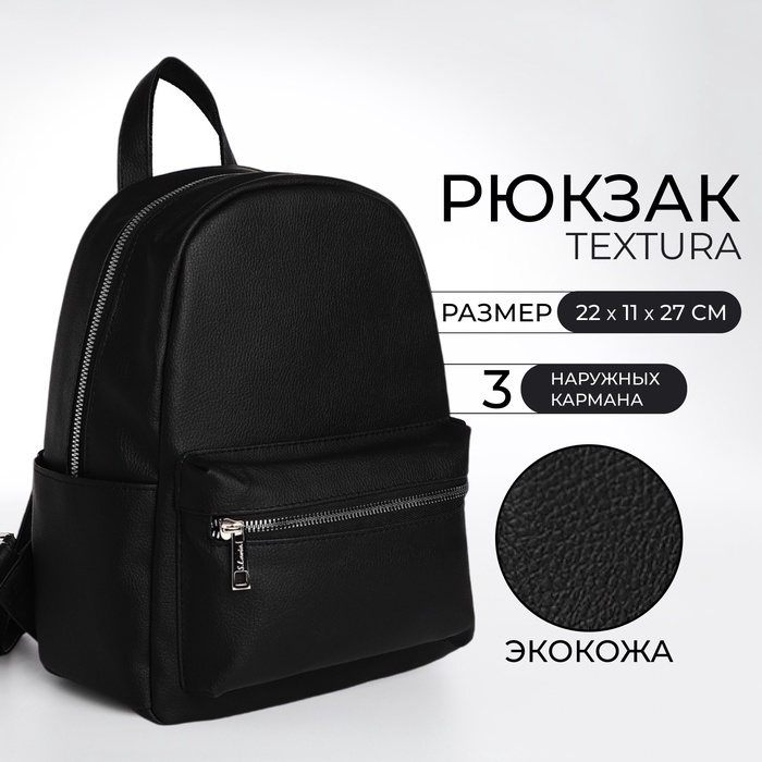 Рюкзак женский городской TEXTURA, с карманом, чёрный