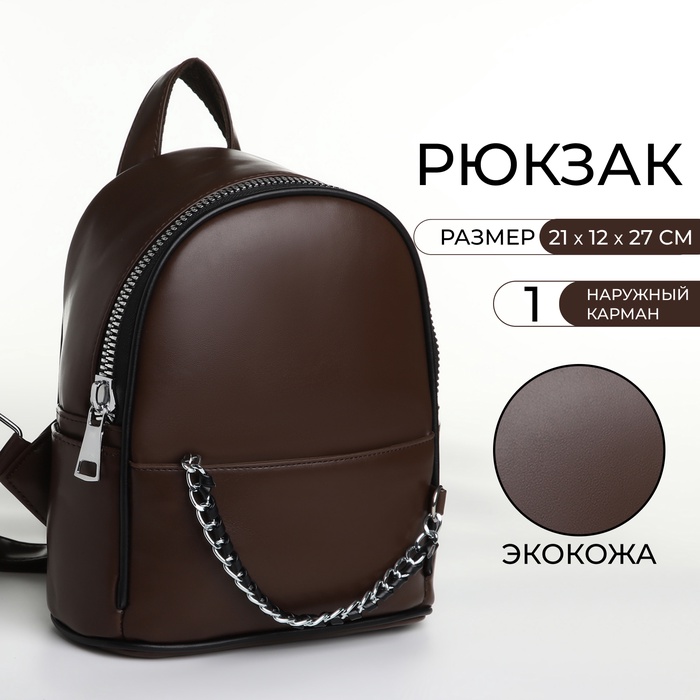 Рюкзак-мини женский Novaria на молнии, с карманом, коричневый