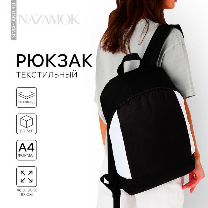 Рюкзак школьный текстильный 46×30×10 см, вертикальный карман, черно-белый