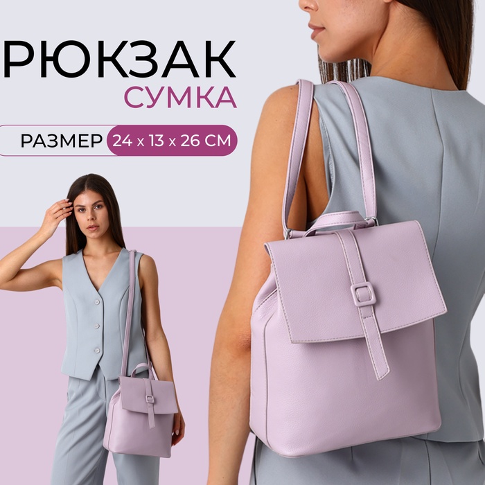 Рюкзак-сумка из искусственной кожи на молнии, цвет розовый